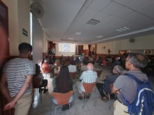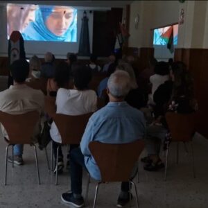 الفيلم الوثائقي “Insumisas” الذي إستحسنه الجمهور تلاه نقااش وتعريف بالقضية الصحراوية وخصوصا حول مقاومة المرأة الصحراوية في المدن المحتلة والمعاناة والانتهاكات الجسيمة لحقوق الانسان التي يتعرض لها باستمرار المدنيون الصحراويون من طرف سلطات الاحتلال المغربي.