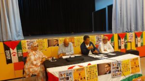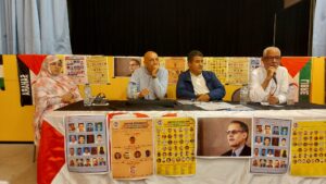 رئيس الندوة الأخ “عبد الله سويلم” قدم محاضرة مهمة لاقت إستحسان الحضور ضمت عرضا مستفيضا حول الوثائق التي ضمت مشروع برنامج عمل اللجان والقانون الأساسي وكذا التقدم الحاصل في الندوات التحضيرة سواء على مستوى الجالية الصحراوية بإسبانيا أو على باقي إمتدادات الجسم الصحراوي، مذكرا بالوضع الراهن الذي تشهده القضية الوطنية خصوصا على مستوى الأرض المحتلة ونضالات الجماهير الصحراوية.