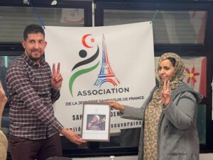 كما عرف اللقاء تكريما رمزيا للمرأة الصحراوية ممثلة في رابطة النساء الصحراويات بفرنسا من خلال إهدائها لوحة تذكارية للشهيدة فطمتوا محمد عالي دهوار.