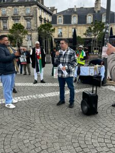 وسط الشعارات الوطنية والهتافات الحماسية تم القاء عدة كلمات ترحيبية بمسيره الحرية للمعتقلين السياسيين استهلها مسؤول الجاليات بفرنسا سيدأمحمد احمد” بالإضافة الى متضامنين فرنسيين مع الشعب الصحراوي وبعض افراد الجالية الصحراوية ،كانت في مجملها تعبر عن تضامنهم ودعمهم لمسيرة الحرية ،كما نددو بالاعتدائات الجبانة التي تعرضت لها المسيرة مند إنطلاقتها وحتى وصولها مدينة بوردو من قبل عناصر الجالية المغربية، كما طالبو سلطات البلد باحترام حرية الرأي وضمان حق التظاهر والاحتجاج إحتراما لمبادئ الشعب الفرنسي الذي يرفض كل أشكال مصادرة الحقوق الانسانية والتي تضمنها العهود والمواثيق الدولية.