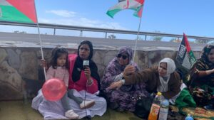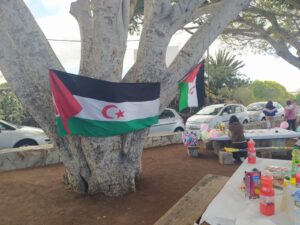 كما كانت المناسبة فرصة للتضامن مع نضالات جماهير الأرض المحتلة وخصوصا مع المناضلة، سلطانة سيد ابراهيم خيا، وعائلتها التي تعاني الإقامة الجبرية المفروضة من طرف سلطات الاحتلال المغربية، وللتضامن مع كافة المعتقلين السياسيين الصحراويين بسجون الاحتلال المغربي، وفي مقدمتهم معتقلي “أگديم إزيك”، ومع عائلة المفقود “لحبيب أغريشي” بالداخلة المحتلة.