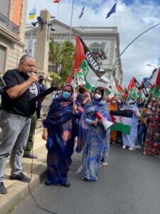 في هذا الإطار شهدت Santa Cruz عاصمة جزيرة تنريفي تنظيم وقفة أمام مبنى مقر الحكومة المحلية حضرتها إلى جانب تمثيلية الجبهة الشعبية بكناريا والجمعيات الصحراوية جمع غفير من الجالية الصحراوية من كل الفئات العمرية شيبا وشبابا نساءا وأطفال،وكذا جمعيات التضامن الكنارية مع الشعب الصحراوي بالإضافة إلى ممثلين عن الأحزاب الأكثر تمثيلا بالبرلمان الكناري وكذا النقابات والهيئات العمالية بالجزيرة،جميعهم عبروا عن رفضهم القاطع لتلك التصريحات المنسوبة لرئيس الحكومة الإسبانية وأكدوا أن لا أحد يمكنه تغيير الطبيعة القانونية لقضية شعبنا العادلة كونها قضية تصفية إستعمار و ينظمها القانون الدولي والشرعية الدولية التي توصي بحق الشعب الصحراوي في تقرير المصير والحرية.