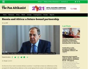 وقد تم نشر مقال الوزير الروسي في عدة مواقع أفريقية منها جريدة الأهرام المصرية، وجريدة “لادبيش دو برازافيل” الكونغولية، و”نيو فيزون” الغانية، و”الهيرالد” الاثيوبية، بالاضافة إلى موقع “ذي بانفريكانيست” الأفريقي.